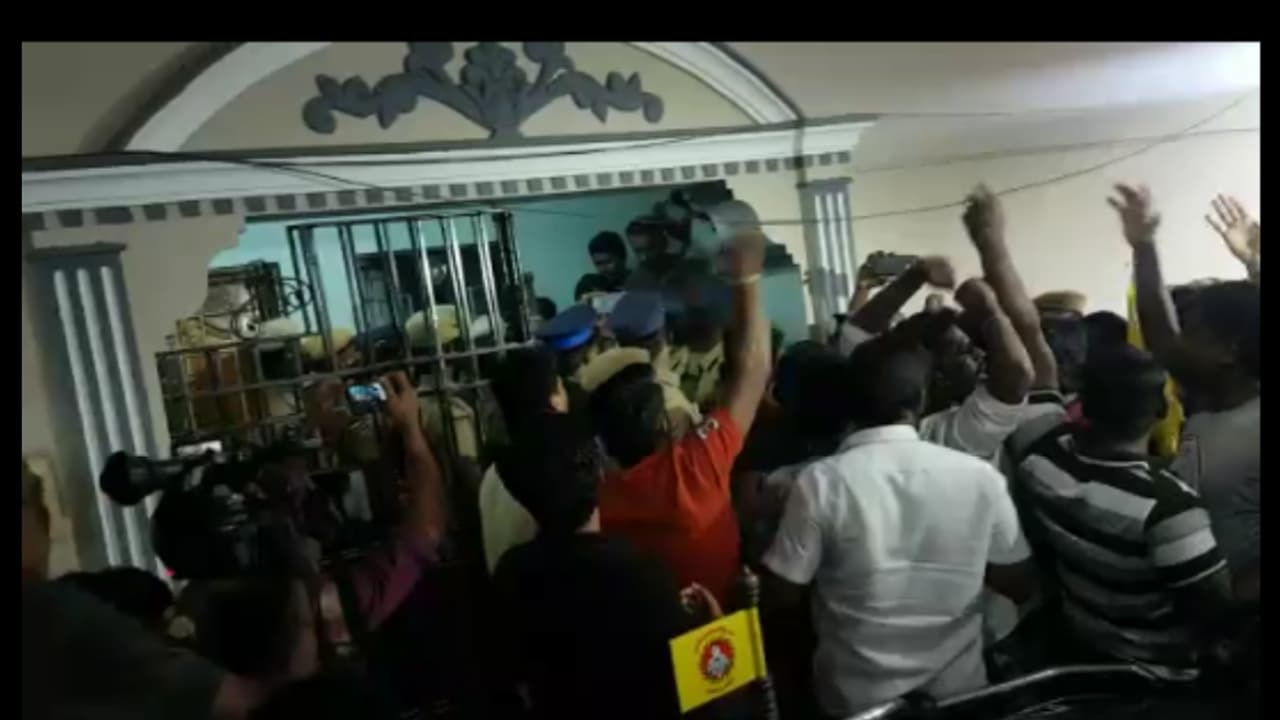 தொண்டர்கள் யாரும் பொலிசாருக்கு என்ற இடையூறும் செய்யாததால் கருணாஸை கைது செய்வதில் போலீசாருக்கு எந்த பிரச்சனையும் ஏற்படவில்லை , இதனால் ஆதரவாளர்கள் இல்லாமல்லேயே காவல் நிலையத்துக்கு கைது செய்து வந்தனர். நாங்க தான் மற்றவர்களெல்லாம் வேஸ்ட் என சினிமாவில் பேசும் வசனம் போல கம்பீரமாய் வாய்க்கு வந்த மாதிரி பேசும் போது, துள்ளி குதித்து ஆரவாரம் செய்த ஆதரவாளர்கள், அண்ணன் கைக்கு விளங்கு மாட்டியதும், துண்டைக் காணோம் துணியைக் காணோம் என பதறி அடித்துக் கொண்டு எஸ்கேப் ஆகிவிட்டனர். அப்போது அங்கு இருந்த கருணாசின் ஆதரவாளர் ஒருவர் கோஷம் போடவும் மறியல் செய்யவும் கூட்டத்தை கூட்ட செல் போனில் கூவி கூவி அழைத்ததுள்ளார்.