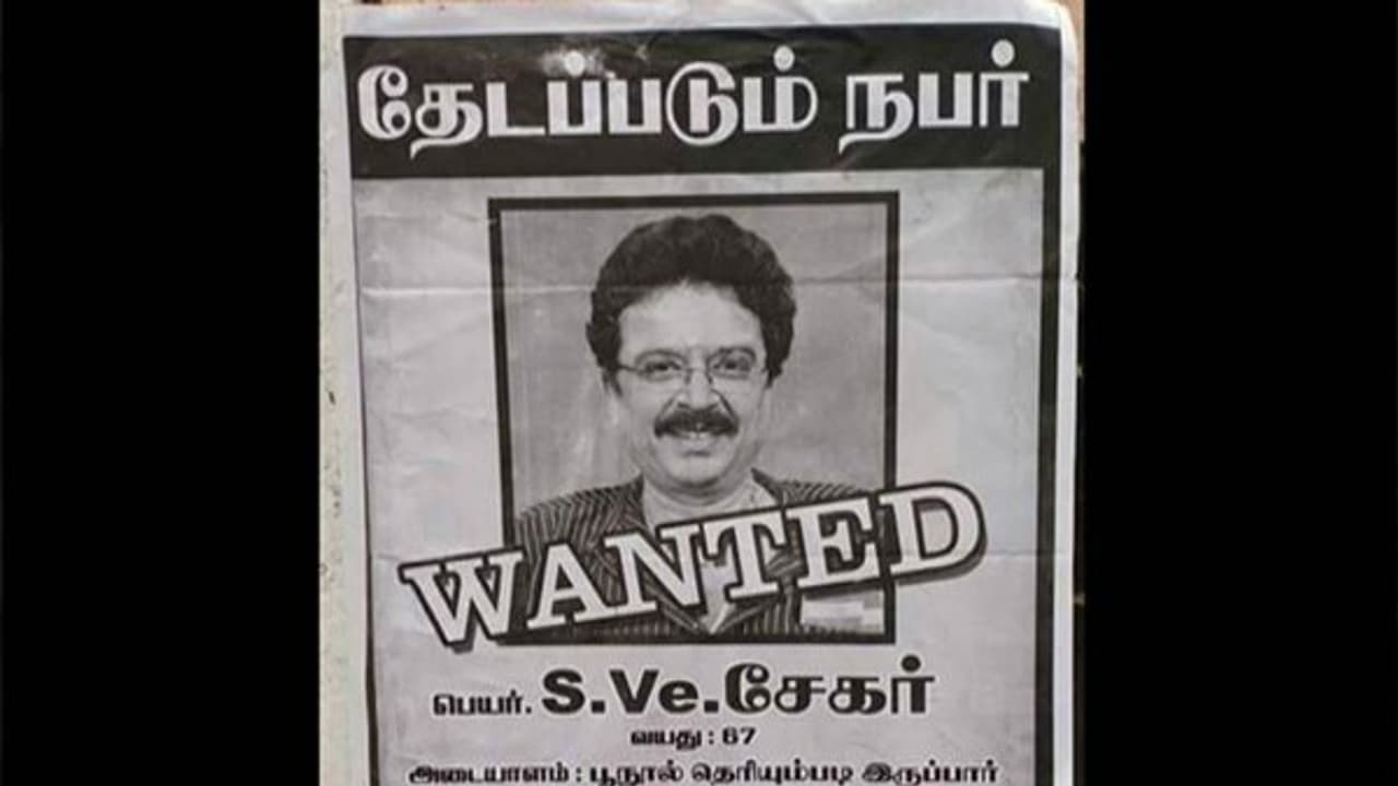 இரு தினங்களுக்கு முன் தலைமறைவாக இருக்கும் எஸ்.வி.சேகர் "தேடப்படும் நபர்" என்று கூறி சென்னையின் பல்வேறு இடங்களில் போஸ்டர்கள் ஒட்டப்பட்டிருந்தன. அந்த சுவரொட்டியில், தேடப்படும் எஸ்.வி.சேகருக்கு வயது 67 என்றும், அடையாளம் பூநூல் தெரியும்படி இருப்பார், பெண்களை இழிவாக பேசுவார் என்று அச்சிடப்பட்டுள்ளது. இவரைப் பற்றி தகவல் தெரிந்தால் அருகாமையில் உள்ள காவல் நிலையத்தில் புகார் தெரிவிக்கவும் என்று சுவரொட்டியில் எழுதப்பட்டிருந்தது. மக்கள் மன்றம், 95854 30895 என்றும் அதில் அச்சிடப்பட்டுள்ளது.