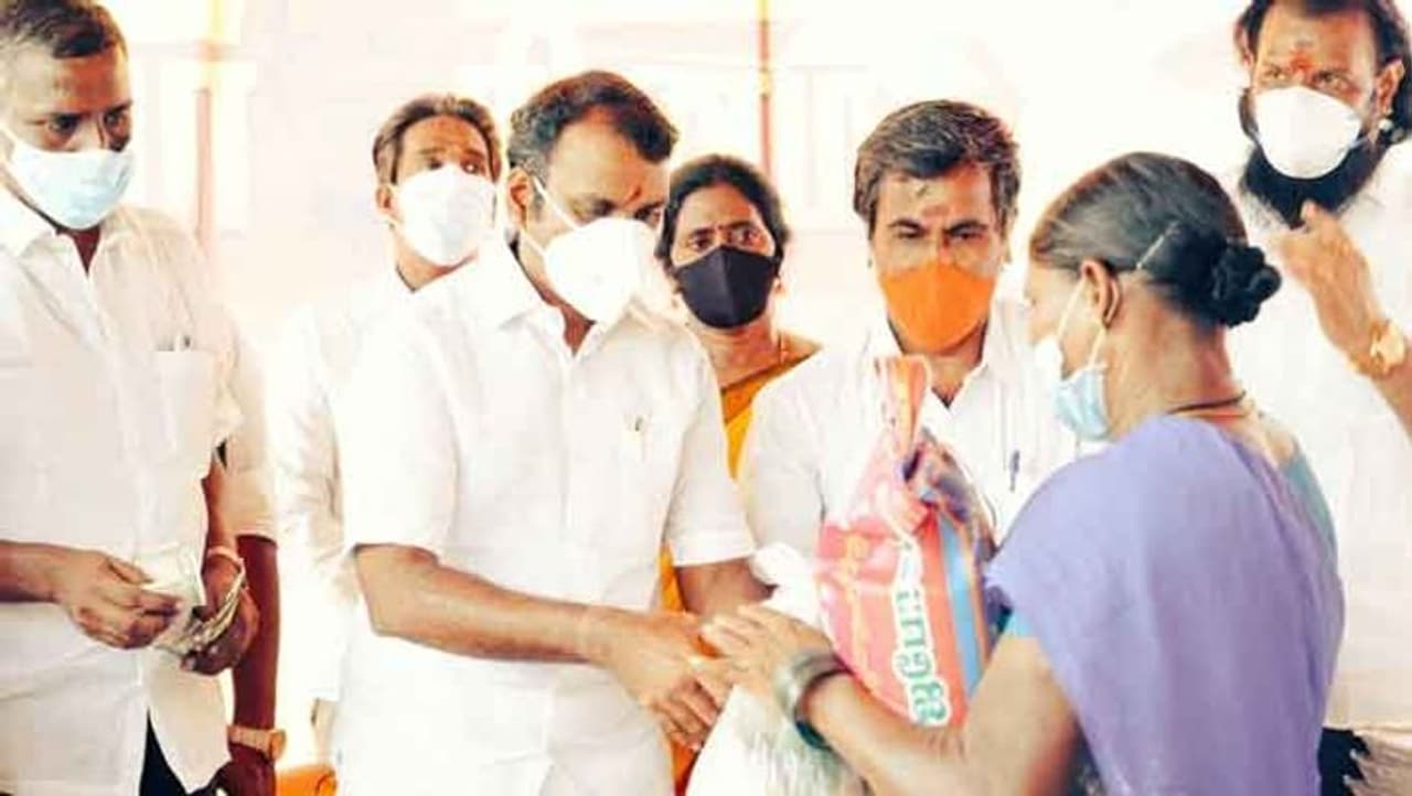 மத்தியில் பாஜக அரசு 2வது முறையாக பதவியேற்று இரண்டு ஆண்டுகள் நிறைவடைந்ததையொட்டி இன்று தமிழகம் முழுவதும்பாஜக கட்சியினர் சேவை தினமாக கொண்டாடப்பட்டு வருகிறது. இதன் ஒரு பகுதியாக சென்னை அமைந்தகரையில் உள்ள தனியார் திருமண மண்டபத்தில் ஏழை குடும்பங்களுக்கு நிவாரண பொருட்கள் வழங்கப்பட்டன. இதில் பாஜக மாநிலத்தலைவர் எல்.முருகன் கலந்துகொண்டு நிவாரண பொருட்களை வழங்கினார்.