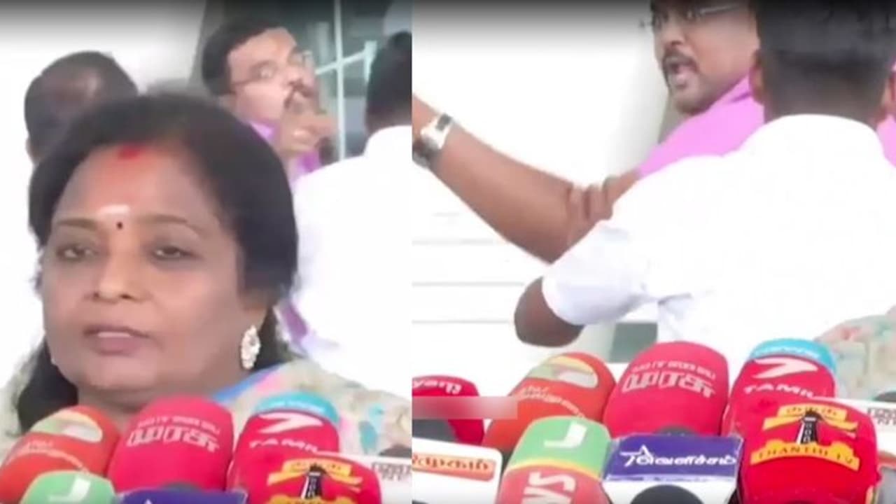 இந்நிலையில், நேற்று சென்னை விமான நிலையத்தில் தமிழிசை செய்தியாளர்களைச் சந்தித்துக் கொண்டிருந்தார். ஏராளமான பிஜேபி தொண்டர்களும் அங்கே கூடியிருந்தனர். அப்போது, பிஜேபி தலைவர் பேட்டியளித்த இடத்துக்கு வந்த அவரின் மகன் சுகநாதன், தமிழிசை முன்னிலையிலேயே பிஜேபிக்கு எதிராகக் கோஷம் எழுப்பினார். தமிழகத்தில் பிஜேபி ஒரு தொகுதியில்கூட ஜெயிக்காது என்றும் அவர் கத்தினார்.