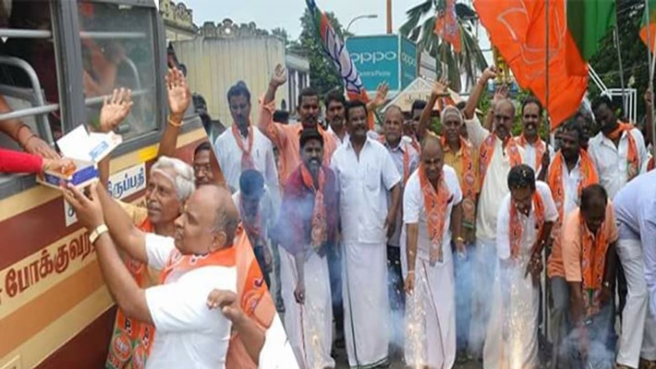 tamilnadu bjp carders celebrate karnataka election victory