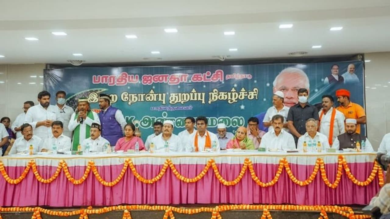 சென்னையில் உள்ள தனியார் திருமண மண்டபத்தில் தமிழக பாஜக சார்பில் இப்தார் நோன்பு திறப்பு நிகழ்ச்சி நடந்தது. இந்த நிகழ்ச்சிக்கு பாஜக மாநில தலைவர் அண்ணாமலை தலைமை தாங்கினார்.