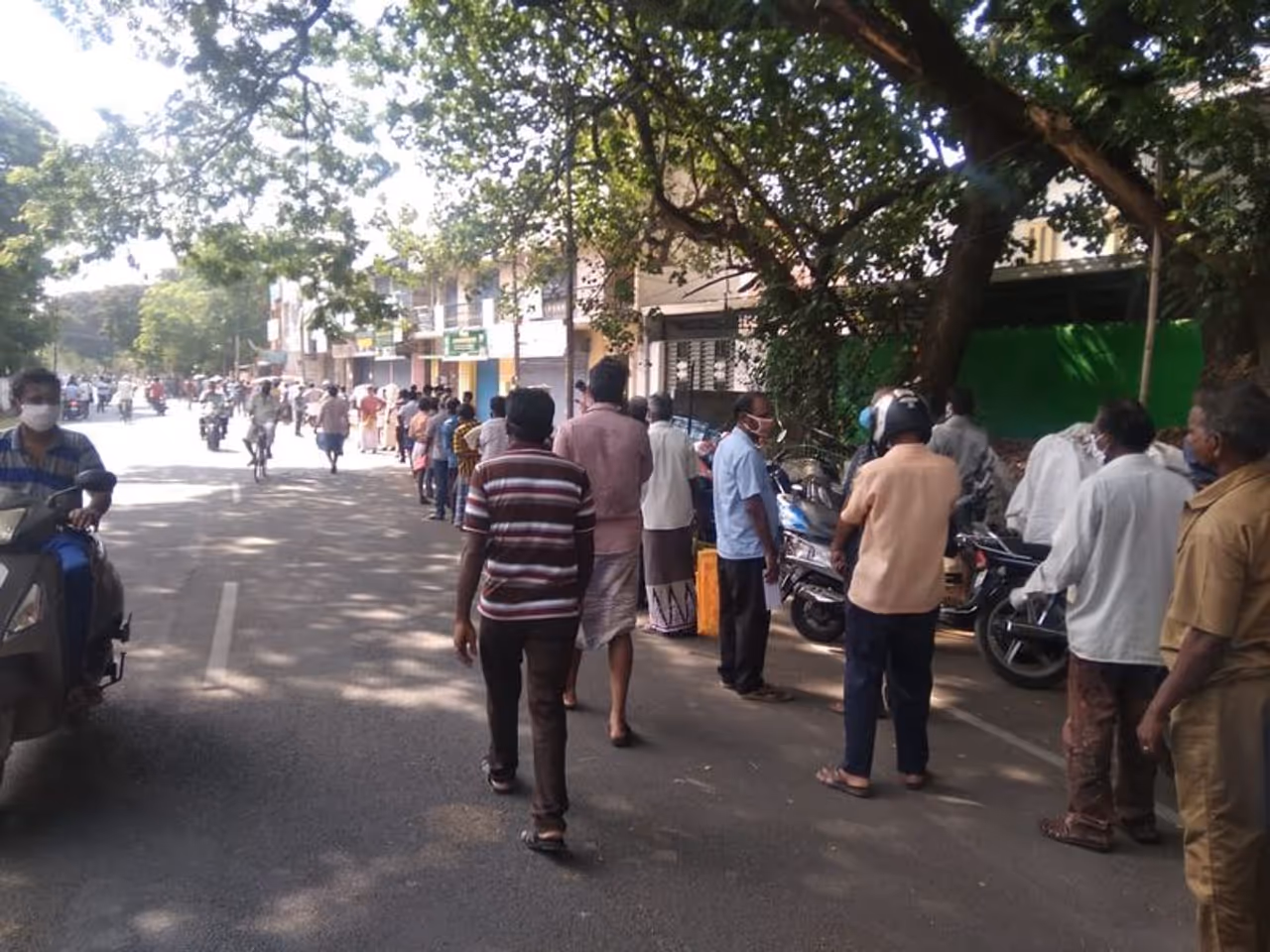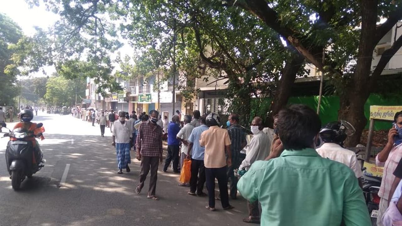 வழக்கம்போல கூட்டம் முண்டியடித்து வர ஒரு சில இடங்களில் இருந்த போலீசார் அவர்களை ஒழுங்குபடுத்தினார் ஆனால் பல இடங்களில் போதிய சமூக இடைவெளி இல்லாமலும் அரசு சொன்ன நெறிமுறைகள் எதையுமே பின்பற்றாத நிலையே காணப்பட்டது,