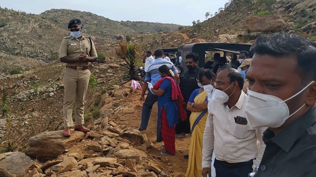 இந்த கிராமத்தை சேர்ந்த ஒருவர் சில மாதங்களுக்கு முன்பு இறந்துவிட, அவரது உடலை டோலி கட்டி ஊரார் தங்களது கிராமத்துக்கு தூக்கி சென்றனர். இறந்தவரின் மனைவி 7 மாத கர்ப்பத்திலும் கணவன் உடலோடு மலையேறி சென்றார். அந்த படங்கள் வெளியாகி பெரும் வேதனையை ஏற்படுத்தியது. இந்நிலையில் கொரோனா ஊரடங்கால் மலை மீதுள்ள மக்களுக்கு எந்த வித நிவாரண உதவியும் கிடைக்கவில்லை. அவர்களுக்கு எந்த வேலையும் கிடைக்காமல் பணமும் இல்லாமல் சிரமப்பட்டனர். இதுப்பற்றிய தகவல் மாவட்ட ஆட்சியர் சிவன்அருள் கவனத்துக்கு சென்றது. இதுப்பற்றி அதிமுகவினரும் திருப்பத்தூர் மாவட்ட அதிமுக செயலாளரும், வணிகவரித்துறை அமைச்சருமான கே.சி.வீரமணியிடம் கூறியுள்ளனர். அதனைத் தொடர்ந்து மே 21ம் தேதி அமைச்சர் வீரமணி, மாவட்ட ஆட்சியர் சிவன்அருள், மாவட்ட காவல்துறை கண்காணிப்பாளர் விஜயகுமார், வருவாய்த்துறை, ஊரகவளர்ச்சித்துறை, சுகாதாரத்துறை அதிகாரிகள் 10 கிலோ மீட்டர் மலையேறி அந்த கிராமத்துக்கு சென்றனர்.