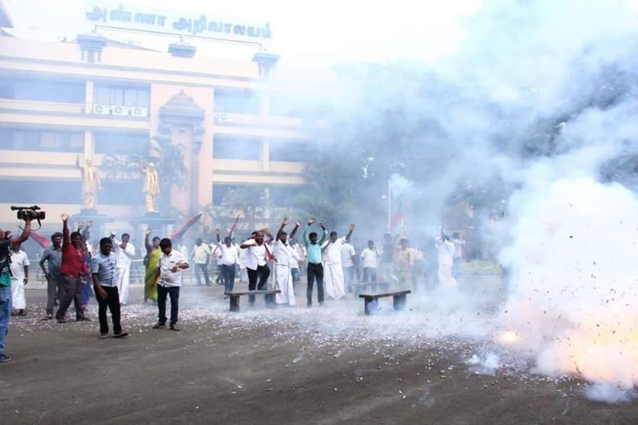 முன்னதாக கொரோனா இரண்டாவது அலை இந்தியாவை தீவிரமாக தாக்கி வரும் நிலையில் தேர்தல் வெற்றியை கொண்டாட இந்திய தேர்தல் ஆணையம் தடை விதித்திருந்தது, ஆனால் தேர்தலில் திமுக 159 சட்டமன்றத் தொகுதிகளைக் கைப்பற்றி வெற்றிபெற்றதையடுத்து திமுக தொண்டர்கள் அண்ணா அறிவாலயத்தில் திரண்டு வெற்றியை கொண்டாடினர். அண்ணா அறிவாலயம் தேனாம்பேட்டை காவல் சரகத்திற்கு உட்பட்ட பகுதி என்பதால் அங்கு கொரோனா கட்டுப்பாடுகளை முறையாக பின்பற்றாததாலும், அண்ணா அறிவாலயத்தில் பாதுகாப்பு ஏற்பாடுகளை செய்யாததாலும், அங்கு திரண்ட கூட்டத்தை அப்புறப்படுத்தாததாலும், தேனாம்பேட்டை காவல் ஆய்வாளர் முரளியை தேர்தல் ஆணையம் அதிரடியாக சஸ்பெண்ட் செய்து உத்தரவு பிறப்பித்தது.