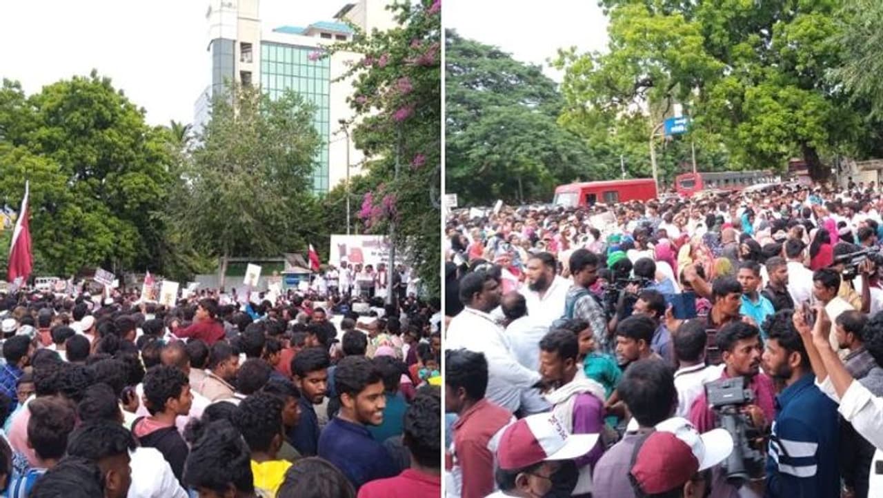 போராட்டப் பகுதியை சுற்றிலும் மனிதநேய ஜனநாயக கட்சியின் கொடிகள் கட்டப்பட்டிருந்தது. கூட்டம் கட்டுக்கடங்காமல் திரண்டதால் அப்பகுதியில் உள்ள சாலைகள் நெரிசலால் திணறியது. ஒரு கட்டத்தில் முற்றுகை போராட்டத்தில் திரண்டவர்கள் அனைவரையும் கைது செய்ய முடியாமல் போலீசார்கள் திணறினர். பல்லாயிரக்கணக்கான மக்கள் எழுச்சியோடு தடையை மீறி திரண்டு கோஷங்களை முழங்கியது பலராலும் ஆச்சரியத்துடன் பார்க்கப்பட்டது. கூட்டம் தடுப்பை உடைத்து முன்னேற அந்த பெரிய வளாகம் முழுக்க மக்கள் எழுச்சியோடு அலைபாய்ந்தனர்.