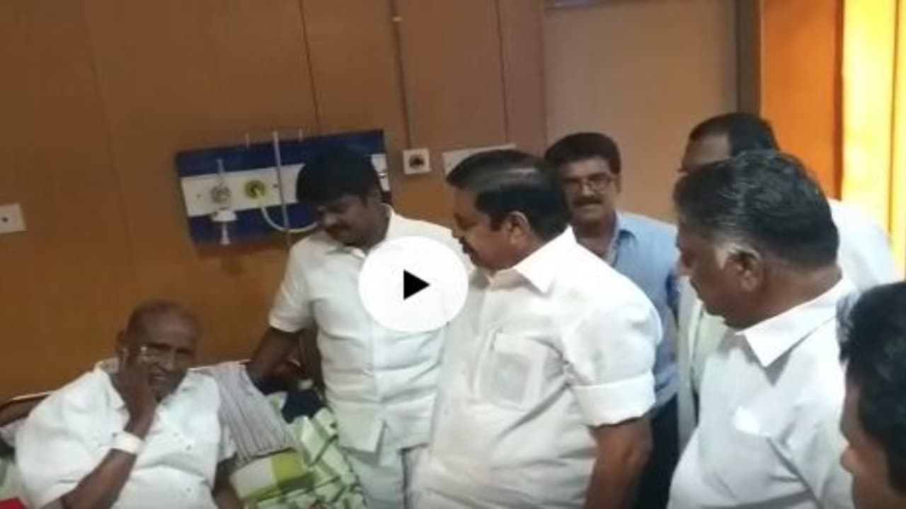 ராஜீவ் காந்தி அரசு மருத்துவமனையில் மூச்சுத்திணறல் காரணமாக சிகிச்சை பெற்று வரும் இந்திய கம்யூனிஸ்ட் கட்சியின் மூத்த தலைவர் தா.பாண்டியனை சந்தித்து நலம் விசாரித்தார் முதல்வர் பழனிசாமி.