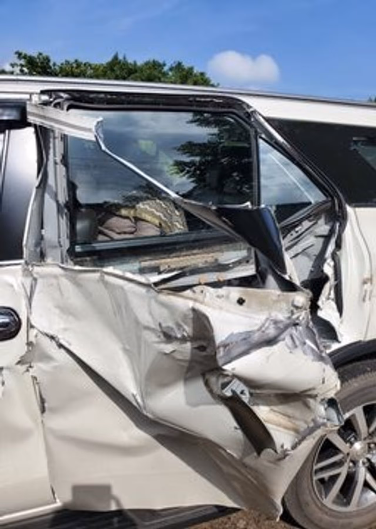 இதில் அதிர்ஷ்டவசமாக அவர் உயிர் தப்பினார். அதாவது மதுராந்தகம் அருகே கார் சென்றபோது பாண்டிச்சேரி நோக்கி சென்று கொண்டிருந்த கண்டெய்னர் லாரி நடிகை குஷ்புவின் காரை முந்திச் செல்ல முயன்றது. அப்போது குஷ்பு சென்ற கார் மீது கண்டெய்னர் லேசாக உரசியது. இந்த விபத்தில் காரின் பின்புற கதவு (பக்கவாட்டில்) பலத்த சேதம் அடைந்தது. காரின் கண்ணாடி உடைந்து நொறுங்கியது. அதில் குஷ்புக்கு லேசான காயம் ஏற்பட்டதாக கூறப்படுகிறது.