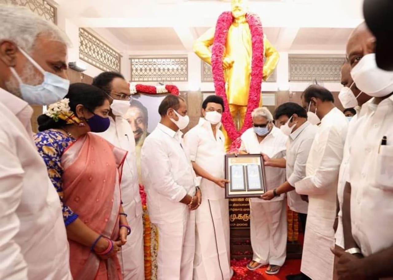 இந்நிலையில் சென்னை அடையாறில் உள்ள சிவாஜி கணேசனின் மணிமண்டபத்தில் அமைந்துள்ள அவரது திருவுருவச் சிலைக்கு, அரசியல் கட்சி தலைவர்கள் பிரபலங்கள், மலர்தூவி மரியாதை செலுத்தி வருகின்றனர். அந்த வரிசையில் தமிழக முதலமைச்சர் மு.க ஸ்டாலின் சிவாஜிகணேசன் சிலைக்கு மரியாதை செலுத்தினார். அப்போது கவிஞர் வைரமுத்து, நடிகர் பிரபு ஆகியோர் உடனிருந்தனர். முன்னதாக பேசிய வைரமுத்து முதலமைச்சர் ஸ்டாலின் சிவாஜி மணி மண்டபத்துக்கு வந்து கலை உலகை பெருமைப்படுத்தி உள்ளார். அவருக்கு நன்றி, சிவாஜி கணேசன் ஒரு கலை அதிசயம், அவர் கதாபாத்திரங்களை ஏற்று நடித்திருக்கா விட்டால் சரித்திர தலைவர்களுக்கு அடையாளம் குறைந்திருக்கும் என்றார்.