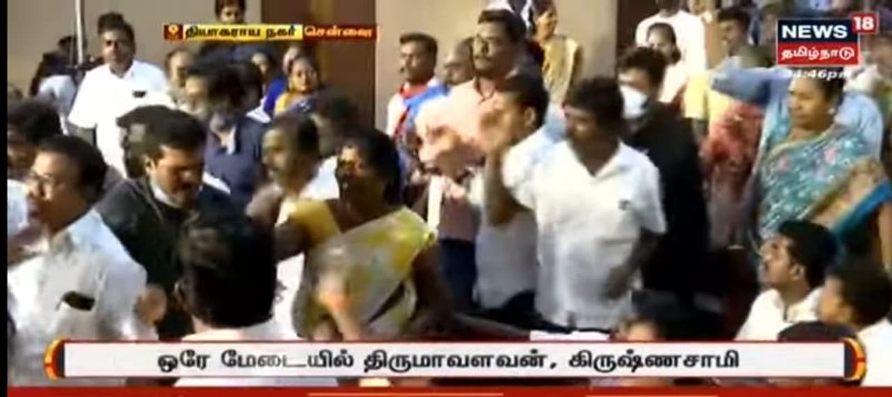 தனியார் தொலைக்காட்சி ஏற்பாடு செய்திருந்த விவாத நிகழ்ச்சிகள் திமுகவுக்கு எதிராக பேசிய கிருஷ்ணசாமியை அங்கிருந்த பார்வையாளர்கள் தாக்க முயற்சித்த நிலையில், விடுதலை சிறுத்தைகள் தலைவர் தொல்.திருமாவளவன் அவர்களை தடுத்து சமாதானப்படுத்திய பரபரப்பு சம்பவம் நடந்துள்ளது. தலித் தலைவராக அறியப்பட்ட கிருஷ்ணசாமி பட்டியலின வெளியேற்றம் மற்றும் பாஜக அதரவு, விடுதலை சிறுத்தைகள் தலைவர் தொல் திருமாவளவன் எதிர்ப்பு என பேசி வரும் நிலையிலும், திருமாவளவனின் இந்த அனுகுமுறையை பலரின் கவணத்தையும் ஈர்த்துள்ளது.