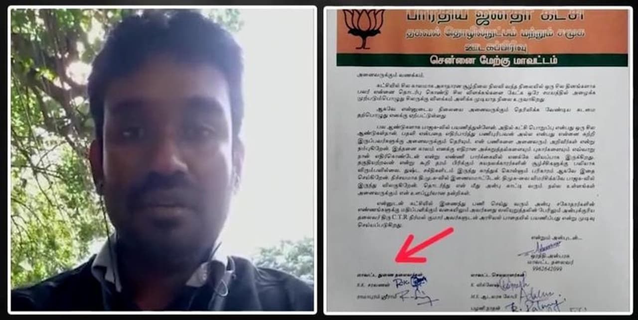 மேலும் கொங்கு மண்டலத்தில் 66 ஆயிரம் வாக்குகள் வித்தியாசத்தில் அதிமுக தோல்வி அடைந்ததையும் கூறி விமர்சித்தார். இதற்க்கு அதிமுக நிர்வாகிகளும் பதிலடி கொடுத்தனர். இந்தநிலையில் நேற்று சென்னை மேற்கு மாவட்ட பாஜக ஐ.டி. பிரிவு நிர்வாகிகள் 13 பேர் கூண்டோடு கட்சியில் இருந்து விலகி உள்ளதாக அறிக்கை ஒன்று வெளியானது. அதில் துணை தலைவர்கள் ஆர்.கே.சரவணன், ராமபுரம் ஶ்ரீராம் ஆகியோர் உட்பட 10 மாவட்ட செயலாளர்கள் விலகி இருப்பதாக அந்த அறிக்கையில் கையெழுத்திட்டு வெளியிடப்பட்டிருந்தது. இந்த தகவலால் பாஜகவினர் கடும் அதிர்ச்சி அடைந்தனர். இந்தநிலையில் சென்னை மேற்கு மாவட்ட ஐடி பிரிவு துணை தலைவர் ஆர்.கே.சரவணன் வீடியோ ஒன்றை வெளியிட்டுள்ளார். அதில் தான் பாஜகவில் இருந்து விலகவில்லையென தெரிவித்துள்ளார்.