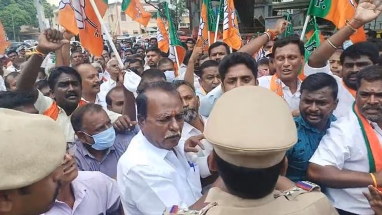 ஆனால் இதனை ஏற்று கொள்ளாத பாஜகவினர் போலிஸ் அராஜகம் ஒலிக என்று கோஷங்களை எழுப்பினர். இதனை தொடர்ந்து காவல் துறையினர் அனைவரையும் குண்டு கட்டாக தூக்கி, வாகனத்தில் ஏற்றி அவர்களை அங்கிருந்து அப்புறப்படுத்தினர். காவல்துறையினருக்கும், பாஜகவினருக்கும் இடையே தள்ளு முள்ளு ஏற்பட்டதால் ஆட்சியர் அலுவலகம் சற்று பரபரப்பாக காணப்பட்டது. இந்த சம்பவம் பரபரப்பை ஏற்படுத்தியது.