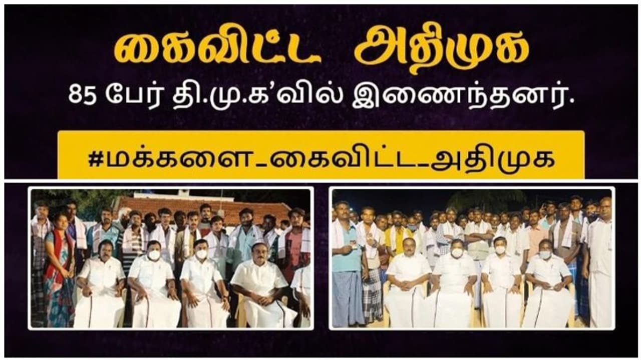 சமீபத்தில், திமுகவில் சில அதிமுக தொண்டர்களை இணைத்துள்ளனர். ‘’எந்த நிவாரணமும் இன்றி தவித்த காஙேயத்தை சேர்ந்த 85 அதிமுகவினர் திமுக செய்த தொடர் நிவாரண பணிகளால் பயன்பெற்று மனம் நெகிழ்ந்து திமுக மாவட்டச் செயலாளர் பத்மநாபன், முன்னாள் அமைச்சர் சாமி நாதன் முன்னிலையில் திமுகவில் இணைந்ததாக’’ அக்கட்சியினர் பெருமையாக தகவல்களை வெளியிட்டுள்ளனர்.