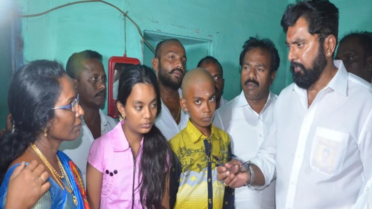 ஆறுதல் கூறிவிட்டு நிவாரண தொகையாக 10 ஆயிரம் ரூபாயை வழங்கினார். முன்னதாக திருச்செந்தூர் வந்த சரத்குமார், கோயிலின் மேற்கூரை