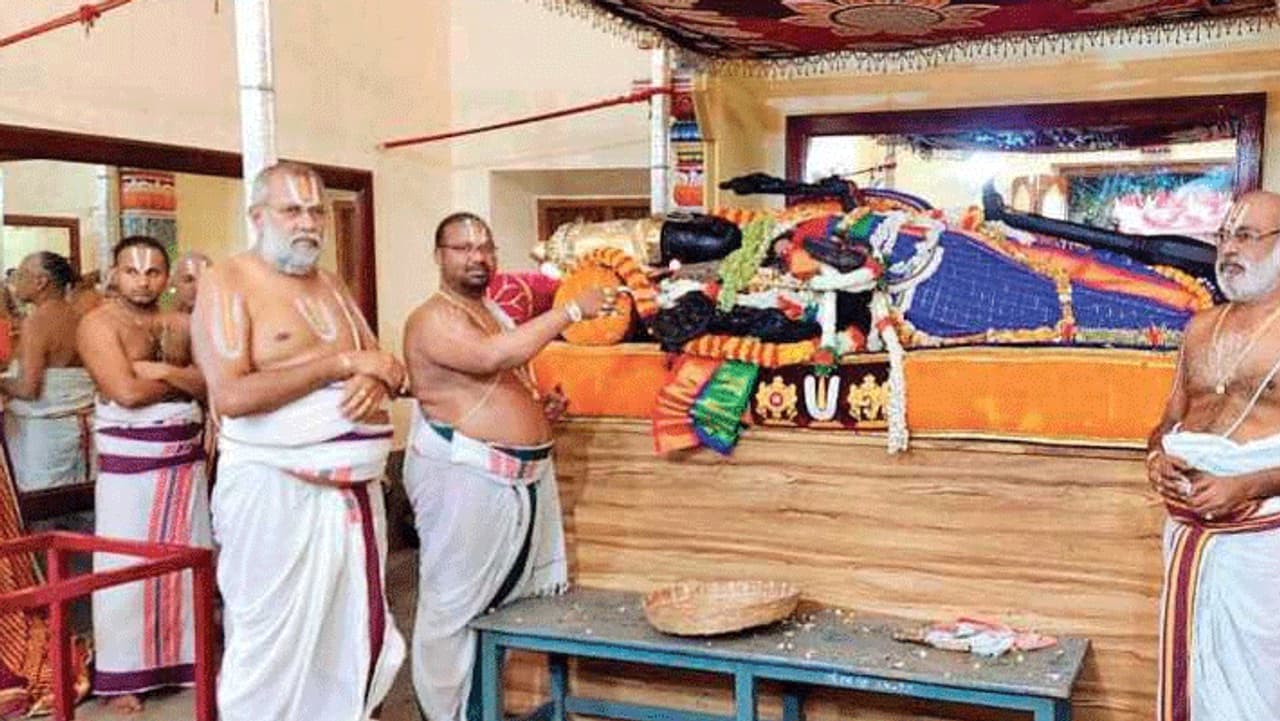 சயன கோலத்தில் இருக்கக்கூடிய பெருமாள் மீன ராசியை குறிக்கக்கூடிய அங்கே தான் சுக்கிரன் உச்சம் அடைகிறார். புதன் நீசம் அடைகிறார். புதனுடைய அதி தேவதை பெருமாள் ஆகும். அவர் மீன ராசியில் சயன கோலத்தில் இருப்பார். அங்கே இருக்கின்ற உச்சமான சுக்கிரன் அமர்ந்த கோலத்தில் இருக்கும். அப்படி தான் சயன கோலத்தில் இருக்கும் பெருமாள் தொப்புள் நாபியில் பிரம்மனும் கழுத்து பகுதியில் லட்சுமி தாயாரும் சிரித்த முகத்துடன் உச்ச பலத்துடன் காட்சி தருவார்கள்.