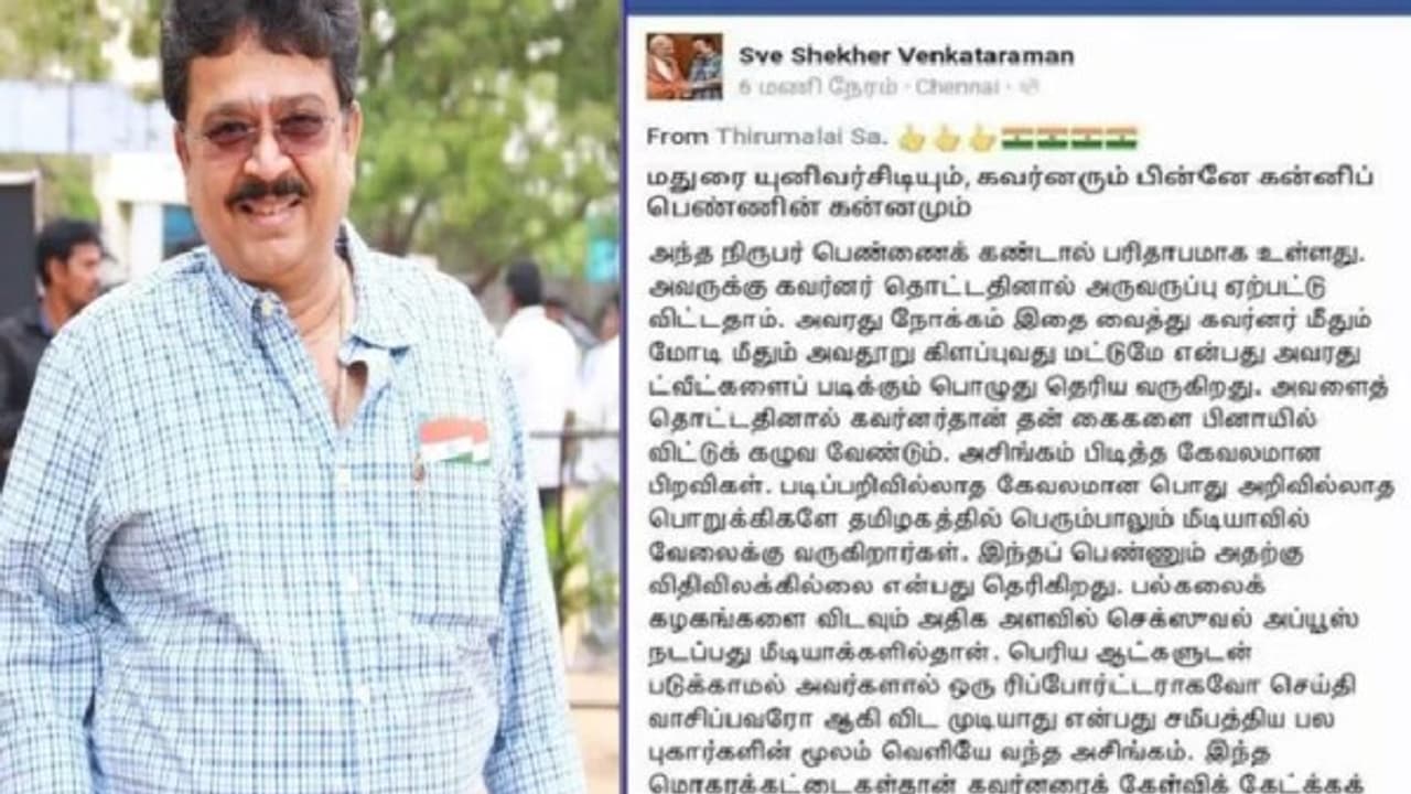 அரசு ஊழியர்கள், ஆசிரியர்கள் போராட்டத்தின் போது முக்கிய நிர்வாகிகளை வீடு புகுந்தும், வாகனங்களை வழிமறித்தும் கைது செய்வதில் தீவிரம் காட்டிய தமிழக காவல்துறையினர் ஊடகங்கள் உட்பட பணியாற்றும் பெண்களைப் பற்றி அவதூறாக பதிவு வெளியிட்ட எஸ்.வி.சேகரை மட்டும் கைது செய்யாமல் பாரபட்சமாக செயல்படுவது கண்டனத்திற்குரியதாகும்.