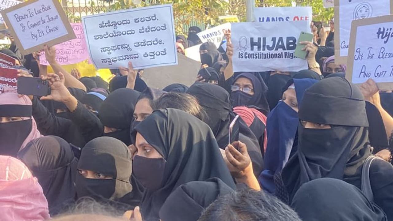 கர்நாடக மாநிலம் உடுப்பியில் உள்ள அரசு மகளிர் பி.யூ. கல்லூரியில் ஒன்றரை மாதங்களுக்கு முன்பு ஹிஜாப் அணிந்து வந்த இஸ்லாமிய மாணவிகளுக்கு வகுப்பறைக்குள் அனுமதி மறுக்கப்பட்டது. இதனால், அந்த மாணவிகள் கல்லூரி நிர்வாகத்தைக் கண்டித்து போராட்டத்தில் ஈடுபட்டனர். மேலும், ஹிஜாப் அணிந்துவந்தால், காவித் துண்டு அணிந்து வருவோம் என்று கூறி பல பகுதிகளிம் இந்துத்துவ மாணவ அமைப்பினரும் போராட்டத்தில் ஈடுபட்டனர். இதனையடுத்து ஹிஜாப் அணிய பல கல்லூரி நிர்வாகங்கள் தடை விதித்தன். இந்த விவகாரம் தேசிய அளவில் சர்ச்சையானது. இந்நிலையில் கல்லூரிக்கு புர்கா அணிந்து வந்த இஸ்லாமிய பெண்ணிடம் ‘ஜெய்ஸ்ரீராம்’ என்று கோஷம் எழுப்பியவர்களிடம், ‘அல்லாஹு அக்பர்’ என்று அந்த மாணவி பதிலுக்கு கோஷம் போட்ட வீடியோ இணையத்தில் வைரலானது.