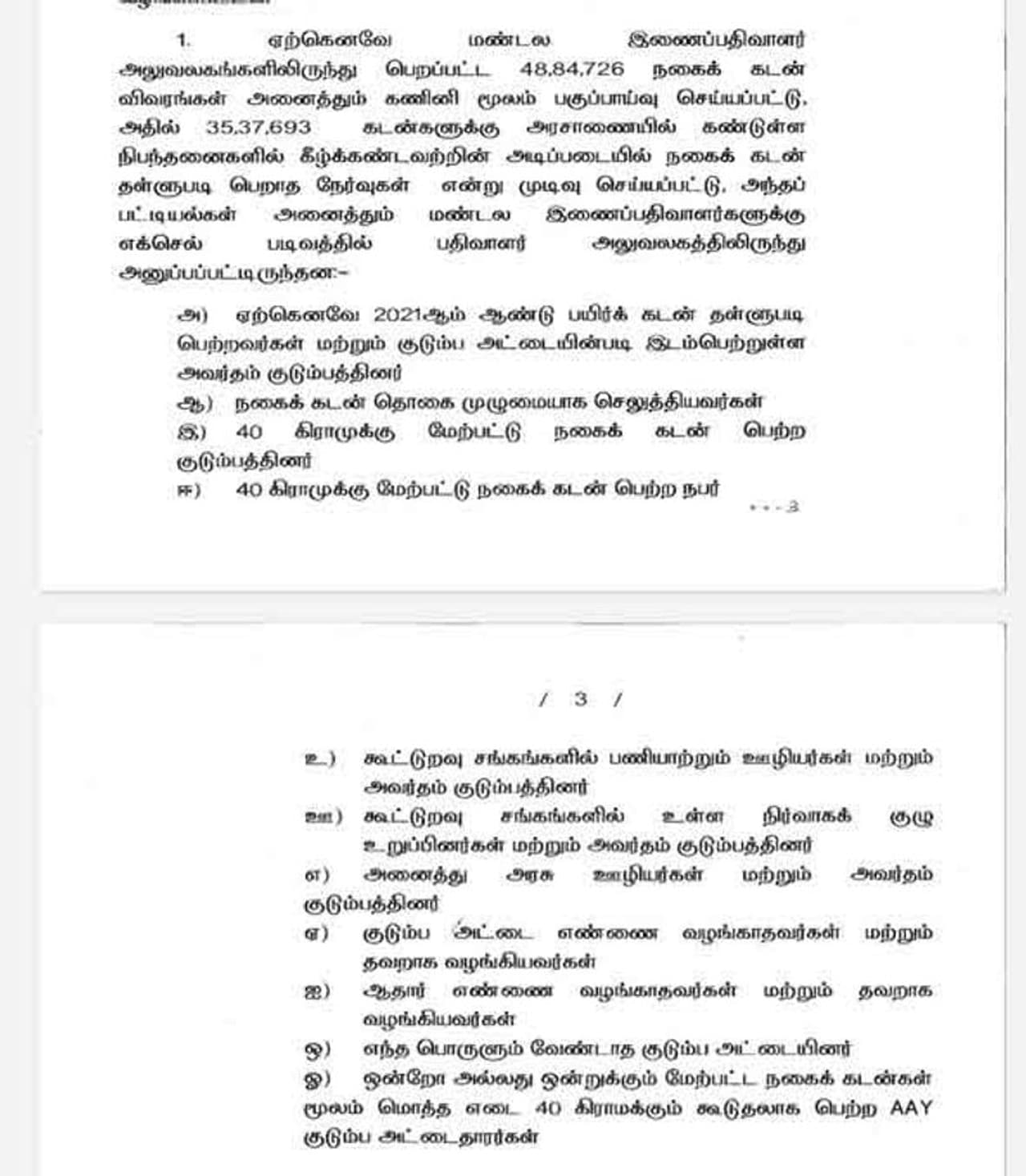 40 கிராமிற்கு மேல் நகைக்கடன் பெற்ற குடும்பத்தினர் கூட்டுறவு சங்கங்களில் பணியாற்றக்கூடிய ஊழியர்கள் மற்றும் அவரது குடும்பத்தினருக்கும் இந்த நகைக்கடன் தள்ளுபடி என்பது செல்லுபடியாகது என்ற அறிவிப்பையும் வெளியிட்டுள்ளது. மேலும் எந்த ஒரு பொருளும் வேண்டாத குடும்ப அட்டை வைத்திருப்போர், குடும்ப அட்டை எண்ணை வழங்காதவர்கள் மற்றும் தவறாக வழங்கியவர்களுக்கும் இந்த நகைக்கடன் தள்ளுபடி செய்யப்படாது என்ற ஒரு அறிப்பையும் தமிழக அரசு வெளியிட்டுள்ள சுற்றிக்கை மூலம் தெரியவந்தது.