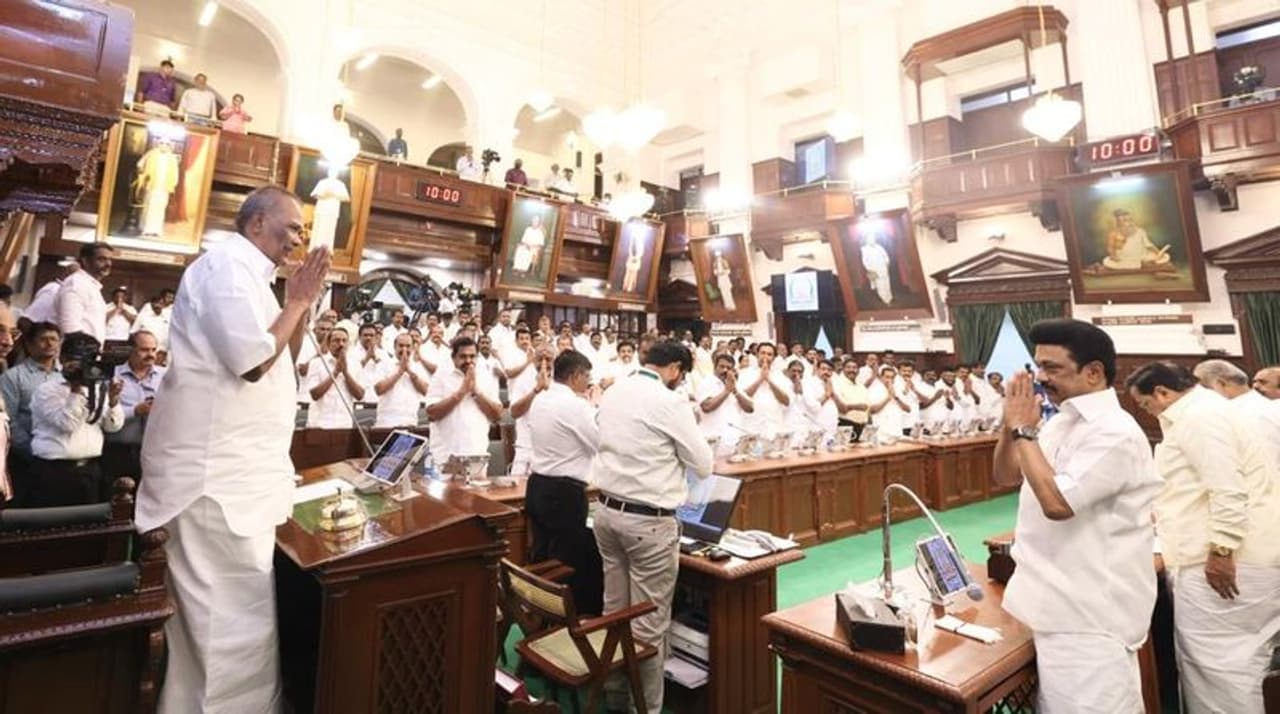 அமைச்சர் காந்தியின் இந்த பேச்சுக்கு அதிமுக உறுப்பினர்கள் கடும் எதிர்ப்பு தெரிவித்து முழக்கங்களை எழுப்பினர். இதன் காரணமாக சட்டமன்றத்தில் பதற்றமான சூழல் உருவானது. இதனையடுத்து பேசிய எதிர்க்கட்சித்தலைவர் எடப்பாடி பழனிசாமி, ஏற்கனவே இலவச வேட்டி, சேலை திட்டம் தொடர்பாக எழுப்பிய கேள்விக்கு பிப்ரவரி மாதத்திற்குள் வேட்டி சேலை வழங்கி முடிக்கப்படும் என அமைச்சர் காந்தி தெரிவித்திருந்தார். அதை தற்போது கேட்கும் போது பதில் சொல்ல முடியாது என்றால் எதற்காக இலாகா வைத்துள்ளீர் என ஆவேசமாக பேசினார். அப்போது குறுக்கிட்ட பேரவைத்தலைவர் அப்பாவு, எதிர்க்கட்சி உறுப்பினர்கள் எழுப்பும் கேள்விக்கு உரிய பதிலை அமைச்சர் வழங்கினால் போதுமானது. ஏன் தாமதம் என உறுப்பினர் கேட்ட கேள்விக்கு அமைச்சர் பதில் வழங்கினால் போதுமானது என மீண்டும், மீண்டும் அறிவுறுத்தினார்.