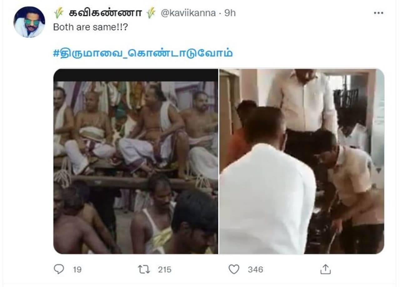 நாள் முழுக்க திருமாவளவனின் இந்த வீடியோ வைரலாகி வரும் நிலையில் விடுதலை சிறுத்தைகள் நிர்வாகிகள், திருமாவளவனின் கடந்தகால போட்டோக்களை வெளியிட்டு அதிரடி காட்டி வருகின்றனர். #திருமாவை_கொண்டாடுவோம் என்ற ஹேஷ்டேக்கும் இணையத்தில் டிரெண்டிங்காக்கி உள்ளனர்.