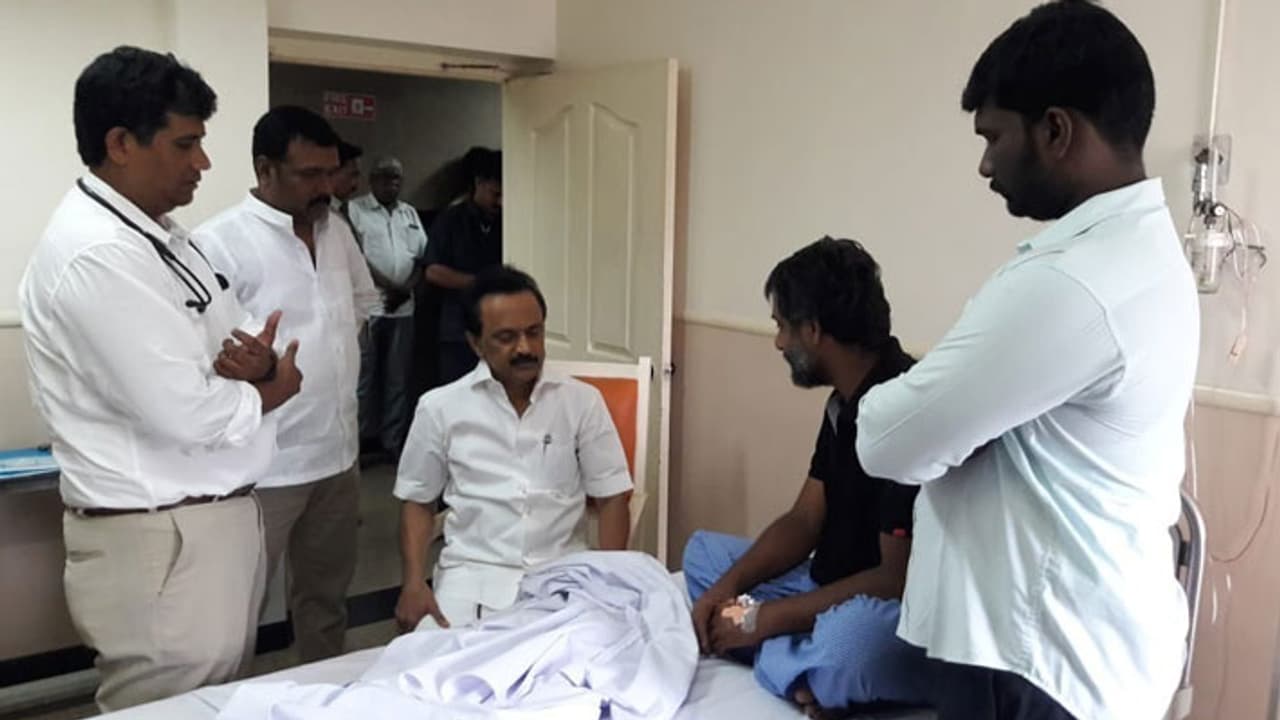 ஜாமினில் விடுவிக்கப்பட்ட பிறகு, மருத்துவமனையில் சிகிச்சை பெற்று வரும் மே 17 இயக்க ஒருங்கிணைப்பாளர் திருமுருகன் காந்தியை, திமுக தலைவர் மு.க.ஸ்டாலின் நேரில் சென்று உடல் நலம் பற்றி கேட்டறிந்தார்.
