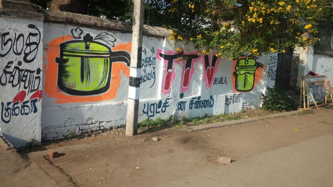 இதையொட்டி, திருவாரூர் தொகுதியில் தேர்தல் நேரத்தில் எவ்வித விளம்பரமும் செய்ய முடியாது என்பதால், இப்போதே வீட்டுககு வீடு சென்று, சுவர்களில் குக்கர் சின்னங்களை அமமுகவினர் வரைந்து வருகின்றனர். திருவாரூர் தொகுதியில் குக்கர் சின்னத்தை மக்கள் மனதில் பதிய வைத்து, அனைத்து வாக்குகளையும் சேகரிக்க திட்டமிட்டுள்ளார். அதே நேரத்தில், தொகுதி திமுகவினர், இதற்கு கடும் எதிர்ப்பு தெரிவிக்கின்றனர்.