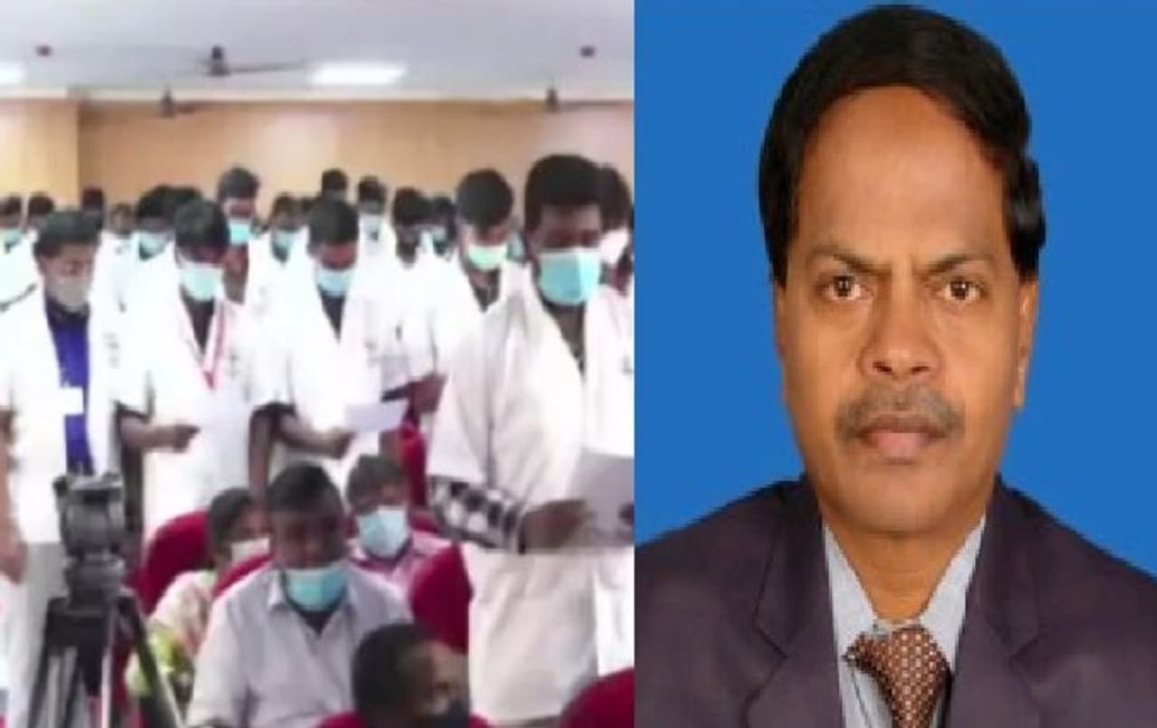 தன்னிச்சையாக விதி மீறி ஹிப்போகிரேடிக் உறுதி மொழிக்கு பதிலாக சம்ஸ்கிருத உறுதி மொழி எடுத்ததால் இந்த நடவடிக்கை மேற்கொள்ளப்பட்டதாக கூறப்பட்டது. இதனிடையே மதுரை மருத்துவ கல்லூரி துணை முதல்வர் தனலட்சுமிக்கு டீன் பொறுப்பு வழங்கப்பட்டுள்ளது. மதுரை மருத்துவக் கல்லூரி டீன் ரத்னவேல் காத்திருப்போர் பட்டியலுக்கு மாற்றப்பட்டதை அடுத்து கல்லூரி டீன் பொறுப்பை கல்லூரி துணை முதல்வர் தனலட்சுமி கூடுதலாக கவனிப்பார் என அறிவிக்கப்பட்டுள்ளது. இந்த நிலையில் மருத்துவக் கல்லூரி டீனை காத்திருப்போர் பட்டியலுக்கு மாற்றியதை ரத்து செய்யக் கோரி அரசு மருத்துவர்கள் சங்கம் முதல்வர் மு.க.ஸ்டாலினுக்கு கடிதம் எழுதியுள்ளது.