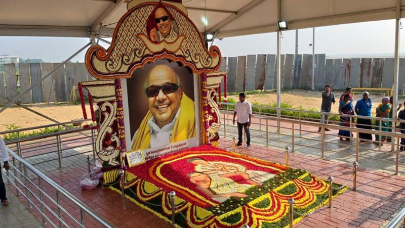 மேலும் கலைஞர் ஆற்றிய அரும்பணிகளை போற்றும் விதமாக, அவரது வாழ்வின் சாதனைகளை, சிந்தனைகளை மக்களும், வருங்காலத் தலைமுறையும் அறியக்கூடிய வகையில், நவீன விளக்கப்படங்களுடன் சென்னை, காமராஜர் சாலை, அண்ணா நினைவிட வளாகத்தில் 2.21 ஏக்கர் பரப்பளவில் ரூபாய் 39 கோடி மதிப்பீட்டில் அவருக்கு நினைவிடம் அமைக்கப்படும் என்று அவர் தெரிவித்தார். இந்த நிலையில் சென்னை மெரினா கடற்கரையில் முன்னாள் முதல்வர் கலைஞர் கருணாநிதி நினைவிடம் அமைப்பதற்கான அரசாணை வௌியிடப்பட்டுள்ளது. திட்ட மதிப்பீடு தயாரானதால் அரசாணை வெளியிடப்பட்டுள்ளது. மேலும் நினைவிடப்பணிகளுக்கு ஒப்பந்தப்புள்ளி கோரப்படும் எனவும் கூறப்பட்டுள்ளது. முன்னாள் முதல்வர் கருணாநிதிக்கு அமைக்கப்படவுள்ள நினைவிடத்தின் மாதிரி வரைபடம் வெளியிடப்பட்டது. அதில், உதயசூரியன் வடிவில் கருணாநிதி நினைவிடமும், முகப்பில் பிரம்மாண்டமான பேனா வடிவிலான தூணும் இடம்பெற்றிருந்தன.