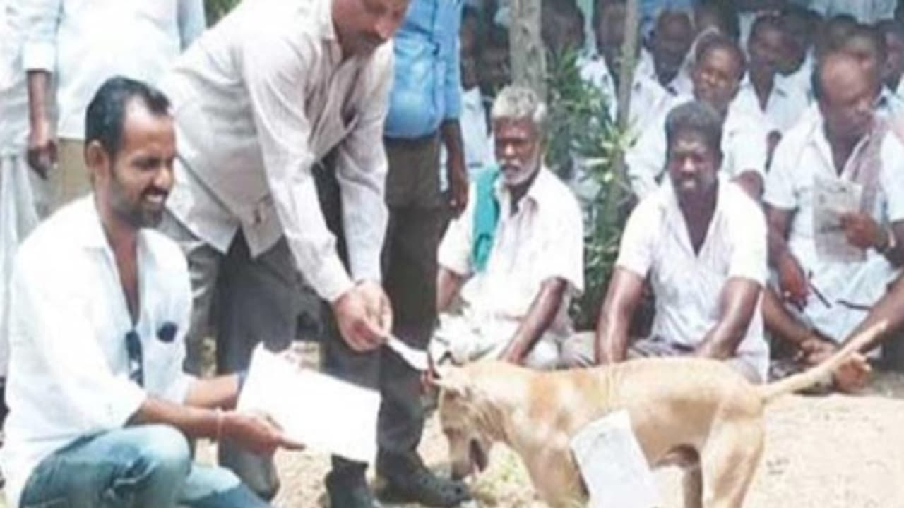 எனவே, இதைக் கண்டித்தும் தேர்தல் முறையாக நடத்தக் கோரியும் நாயிடம் மனு கொடுத்தோம். நாய் நன்றியுள்ள பிராணி. விசுவாசமாக நேர்மையாக நடந்து கொள்ளும். ஆனால், இங்குள்ள அரசியல்வாதிகளும், அதிகாரிகளும் சரியாக நடந்து கொள்ளவில்லை என்று திமுகவினர் அப்போது குற்றம் கூறினர்.