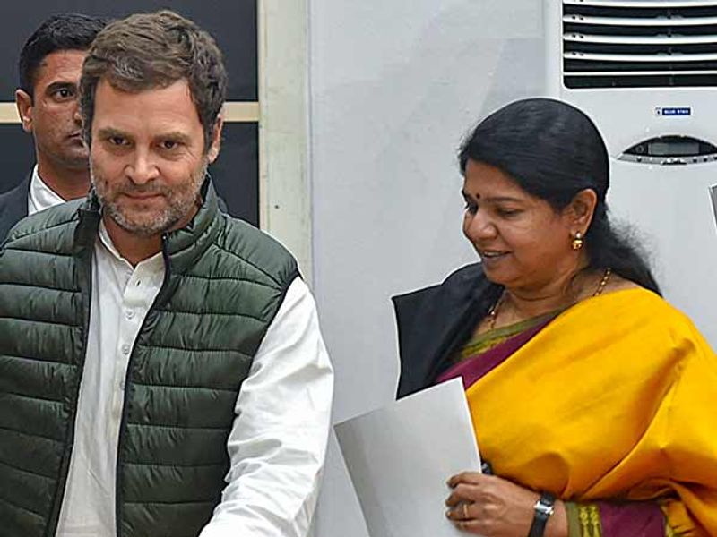 தேசிய கட்சியான காங்கிரஸ், தி.மு.க. கூட்டணியில் தங்களுக்கு இரட்டை இலக்கத்தில் தொகுதிகளை வழங்க வேண்டும் என்று வலியுறுத்தி வருகிறது. காங்கிரஸ் கட்சிக்கு வழங்க வேண்டிய தொகுதிகளின் எண்ணிக்கை மற்றும் எந்தெந்த தொகுதிகள் என்று இறுதி முடிவு எடுப்பதற்காக, டெல்லியில் அகில இந்திய காங்கிரஸ் கட்சி தலைவர் ராகுல்காந்தியை, தி.மு.க. தலைவர் மு.க.ஸ்டாலின் ஆலோசனையின் பேரில், கனிமொழி எம்.பி. நேற்று முன்தினம் சந்தித்து பேசினார்.