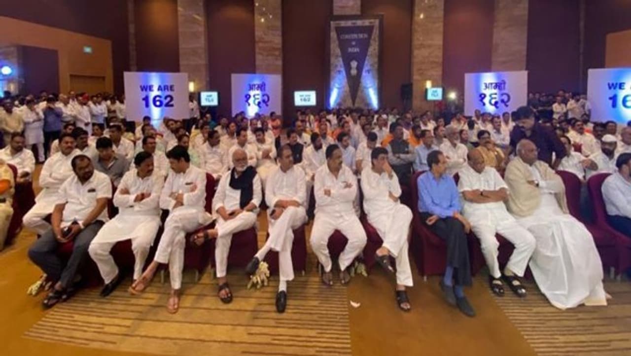 மகாராஷ்ட்ரா மாநில சட்டசபையில் எப்போது நம்பிக்கை வாக்கெடுப்பு நடத்துவது என்பது குறித்து சுப்ரீம் கோர்ட்டு இன்று உத்தரவு பிறப்பிக்கிறது. அதற்கு முன்பாக நேற்று மும்பையில் உள்ள தனியார் ஹோட்டலில் சிவசேனா, தேசியவாத காங்கிரஸ் மற்றும் காங்கிரஸ் கட்சிகளைச் சேர்ந்த 162 எம்எல்ஏக்கள் அணிவகுப்பு நடத்தினர்