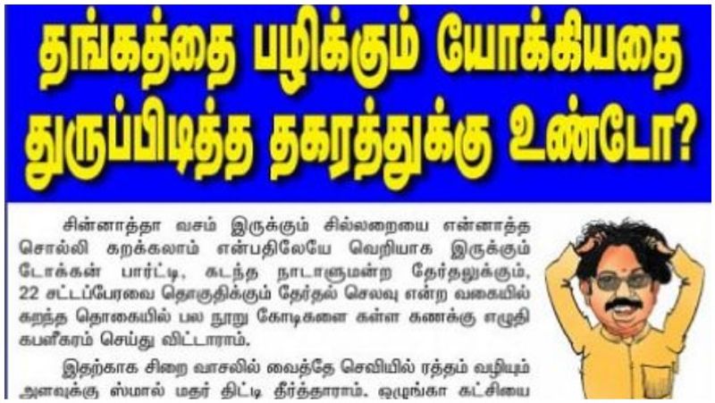 ‘தங்கத்தை பழிக்கும் யோக்கியதை துருப்பிடித்த தகரத்துக்கு உண்டோ...’ என்ற அந்தக் கட்டிரையில், ’’டோக்கன் பார்ட்டியோ 2021 சட்டமன்ற பொதுத்தேர்தல் வரை ஆமமூக்கன் கட்சியை நடத்தியே தீர்வேன் என்று அடம்பிடித்தாராம்.