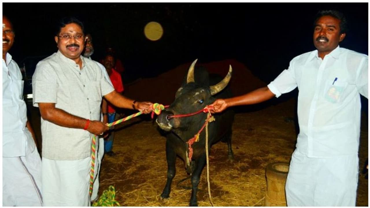 டி.டி.வி.தினகரனின் காளைக்கு ரூ.5000 ரொக்கம் பரிசாக அறிவிக்கப்பட்டது. அரசியல் களத்தில் நின்று விளையாடும் தினகரனை போலவே அவரது காளையும் சுற்றிவந்து அனைவரையும் ஒரு பார்வை பார்த்துவிட்டு பிடிபடாமல் சென்றது. அந்தக் காளைக்கு பக்கத்தில் கூட யாரும் நெருங்கவில்லை. இதனைன் அறிவிக்கும்போது அமைச்சர்கள், ஓபிஎஸ் தம்பி ராஜா உள்ளிட்டோர் பார்வையாளர் மாடத்தில் இருந்து ரசித்தனர்.