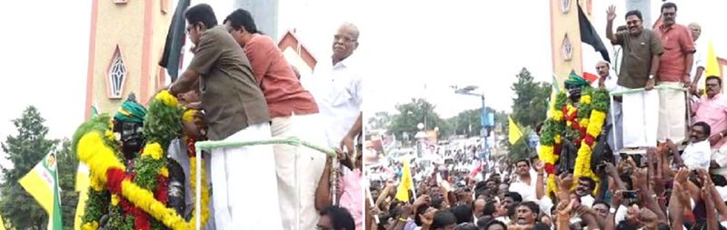 பின்னர்காலை 11.30 மணிக்குடி.டி.வி.தினகரன்வந்துமாலைஅணிவித்துமரியாதைசெலுத்தினார். டி.டி.வி.தினகரனை பார்க்க சாலையின் இருதரப்பிலும் ஆயிரக்கணக்கான பெண்களும், பொது மக்களும் திரண்டதால் பெரும் பரபரப்பு ஏற்பட்டது.