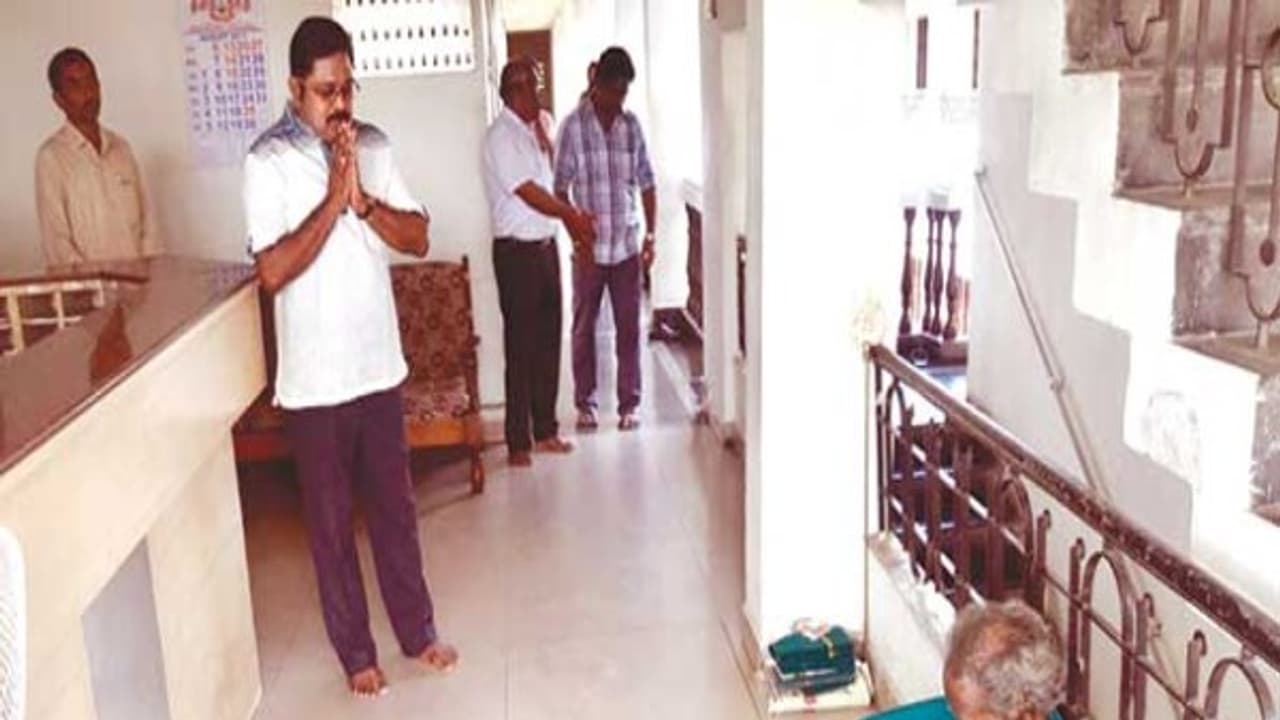 அவரை தினகரன் நேரில் சென்று கும்பிட்டார். பின்னர் அவர் முன்னால் சற்று தூரத்தில் அமர்ந்து ஆசி பெற்றார். சுமார் அரை மணி நேரத்துக்கும் மேலாக அங்கிருந்த தினகரன் பின்னர் அங்கிருந்து புறப்பட்டார்.