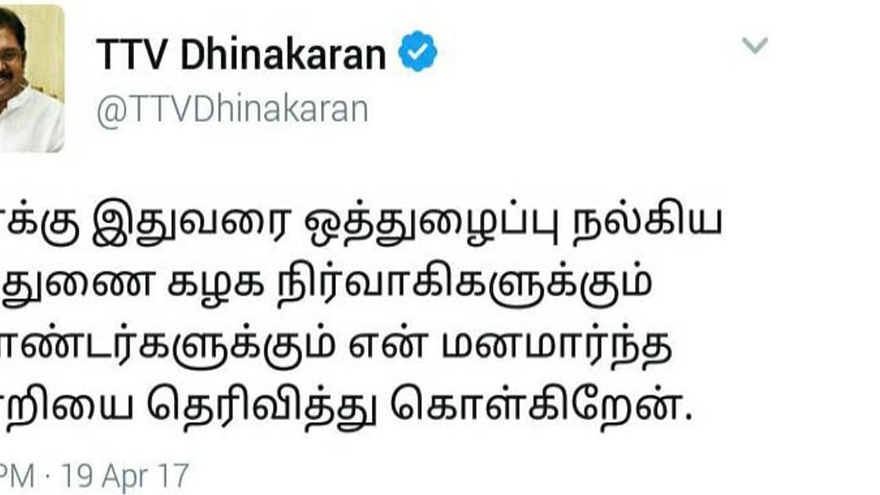 இந்நிலையில், இதுகுறித்து தனது டுவிட்டர் பக்கத்திலும் உருக்கமான செய்தி ஒன்றை வெளியிட்டுள்ளார் தினகரன். அதில் கூறியிருப்பதாவது:
