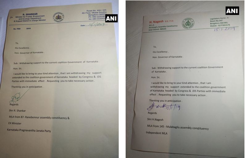 மேலும், முதல்வர் குமாரசாமி அரசுக்கான ஆதரவை 2 சுயேட்சை எம்.எல்.ஏக்கள் வாபஸ் பெற்றனர். குமாரசாமி செயல்பாடுகளில் திருப்தி இல்லை என இருவரும் குற்றச்சாட்டு வைத்து கடிதம் வெளியிட்டுள்ளனர்.