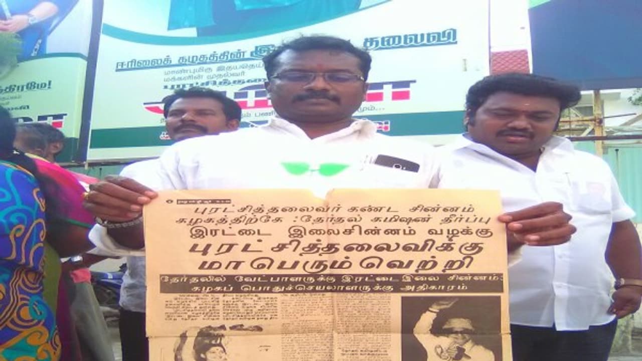 ஜெயலலிதா மறைவிற்கு பிறகு இரண்டு அணிகளாக பிரிந்த தினகரன் அணி மற்றும் எடப்பாடி அணி, உட்கட்சி பூசல் காரணமாக ஒரே சின்னத்திற்கு உரிமை கோரியதால், கடந்த மார்ச் மாதம் 22 ஆம் தேதி இரட்டை இலை சின்னத்தை முடக்கியது தேர்தல் ஆணையம்