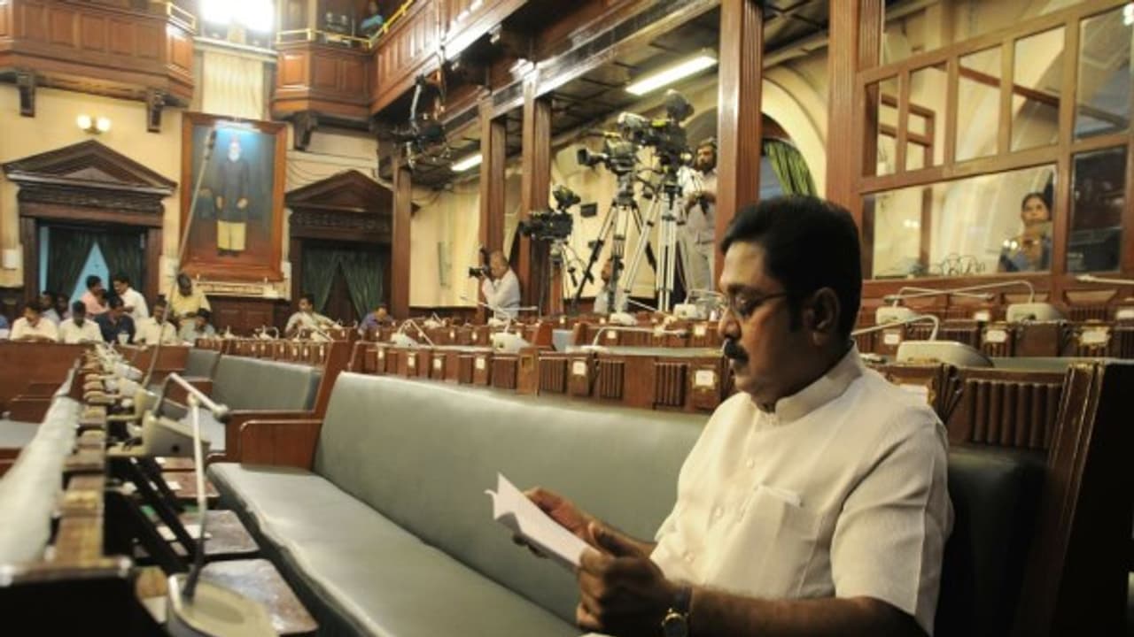 வழக்கம்போல சில நிமிடங்களிலேயே எதிர்ப்பு கூச்சல் போட்டுவிட்டு வெளியேறியது ஸ்டாலின் &கோ ஆனால், தினகரன் வெளிநடப்பு செய்யவில்லை. சட்டசபையில் தினகரனுக்கு 148ம் எண் இருக்கை ஒதுக்கப்பட்டு இருக்கிறது. அவை நிகழ்வுகளை கவனித்து வருகிறார். முதல்முறையாக சபைக்கு வந்ததால் மிகவும் அமைதியாக காணப்பட்ட அவர் உறுப்பினர்களுக்கு வழங்கப்பட்ட சட்டசபை நிகழ்வுகளை குறித்த புத்தகத்தை அவர் படித்துக் கொண்டு இருந்தார்.