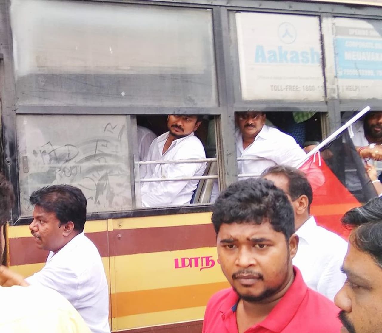 சைதாப்பேட்டை பஜார் சாலையில் இருந்து ஊர்வலமாக தொடங்கி தபால் நிலையம் வரை ஊர்வலமாக தனது தொண்டர்களுடன் சென்றார் உதயநிதி. போராட்டத்தில் ஈடுபட்டவர்களை கட்டுப்படுத் போலீசார் முயன்றனர். பின்னர் உதயநிதி மற்றும் தொண்டர்களை கைது செய்து அரசு பேருந்தில் ஏற்றி பனகல் மாளிகை வளைவு வரை அழைத்து வந்தனர். மீண்டும் சாலை மறியலில் ஈடுபட்டதால் அங்கு போக்குவரத்து நெரிசல் ஏற்பட்டது.