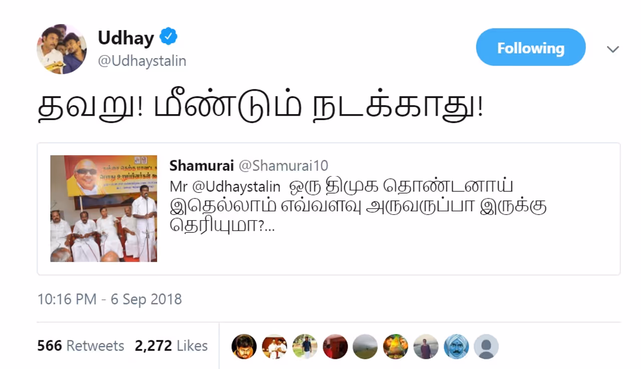 ”தவறு! மீண்டும் நடக்காது!” இது தான் உதயநிதியின் பதில். இந்த விஷயத்தில் உதயநிதியின் தவறு எதுவும் இல்லை தான். ஆனாலும் தவறை அவர் ஏற்று கொண்டு, பெருந்தன்மையாக பதிலளித்திருக்கும் விதம் அனைவரின் கவனத்தையும் பெற்றிருக்கிறது.