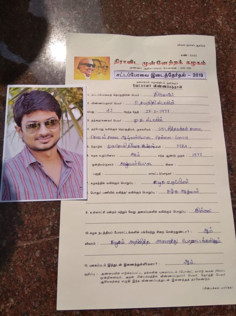 இதனையடுத்து, அவர்கள் கொடுத்த அந்த விருப்ப மனுவில் உதயநிதி ஸ்டாலின் பிறந்த வருடம் 1977 என்றும், அவர் திமுகவில் உறுப்பினரான வருடம் 1977 என்றும் உள்ளது. அதாவது உதயநிதி ஸ்டாலின் பிறந்தவுடனே திமுக உறுப்பினரானதாக இருப்பதாகவும், களப்பணிகள் செய்திருப்பதாகவும் திமுக உபிக்களால் குறிப்பிடப்பட்டுள்ளது.