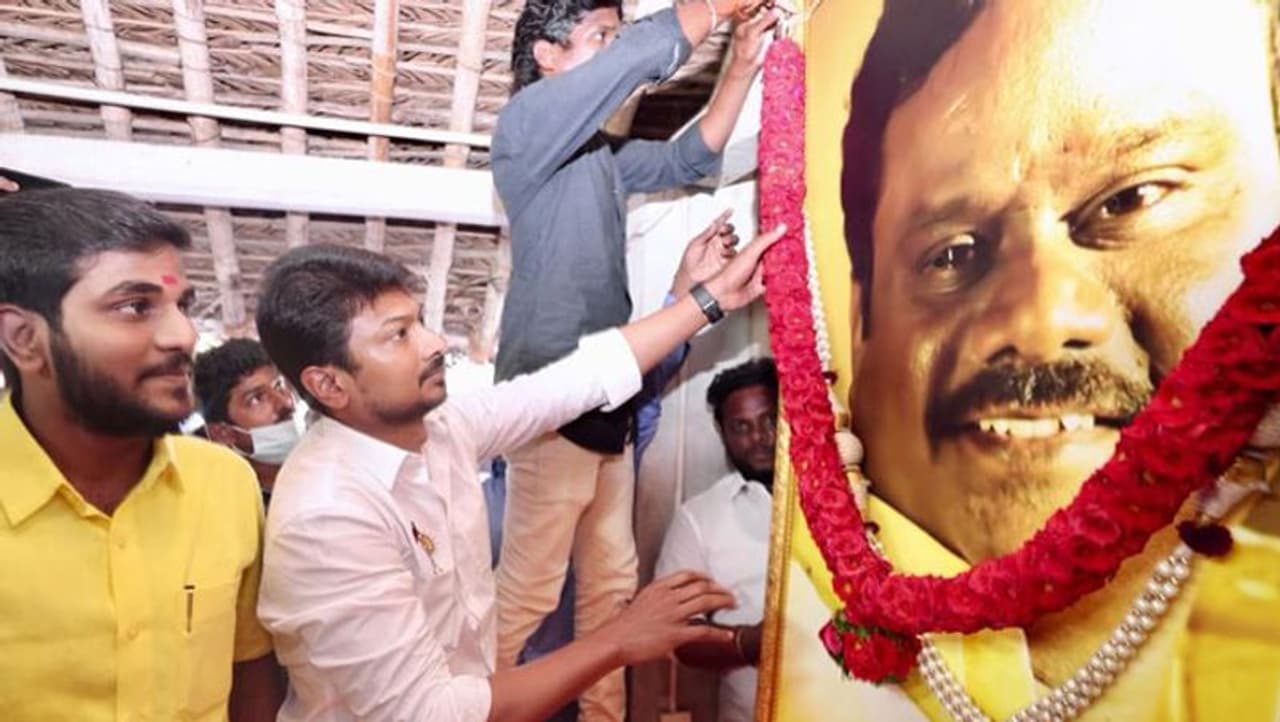 மறைந்த வன்னியர் சங்கத் தலைவர் காடுவெட்டி குருவின் படத்துக்கு திமுக மாநில இளைஞரணி செயலாளர் உதயநிதி ஸ்டாலின் மாலை அணிவித்து மரியாதை செலுத்தியுள்ளார்.