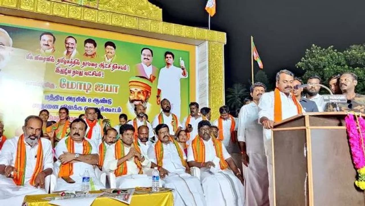 மதுரை மாவட்டம் மேலூரில் பா. ஜ. க சார்பில் மத்திய மோடி அரசின் 8 ஆண்டு சாதனை விளக்க பொதுக்கூட்டம் பேருந்து நிலையம் முன்பு நடைபெற்றது. இதில் சிறப்பு விருந்தினராக மத்திய இணை அமைச்சர் எல்.முருகன் கலந்துகொண்டார். நிகழ்ச்சியில் பேசிய மத்திய இணையமைச்சர் எல்.முருகன், '2014-ம் ஆண்டு பிரதமர் நரேந்திர மோடி பிரதமராக பதவியேற்றது முதலே இந்தியா வளர்ச்சி பாதையில் முன்னேற்றம் அடைந்து வருகிறது.