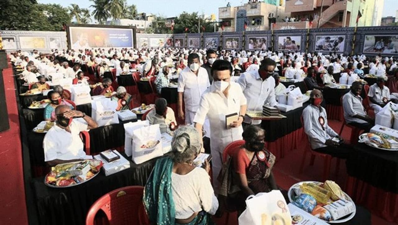 சென்னையில் நீண்ட நாட்களுக்கு பிறகு திமுக சார்பில் தடல் புடலாக விழா ஒன்றுக்கு ஏற்பாடு செய்யப்பட்டிருந்தது. கொரோனா கால கட்டத்தில் திமுக சார்பில் பெரும்பாலும் நிகழ்ச்சிகள் ஏற்பாடு செய்யப்படுவது தவிர்க்கப்பட்டு வந்தது. ஆனால் திமுக இளைஞர் அணி செயலாளர் உதயநிதி மட்டும் பம்பரமாக சுழன்று திமுக நிகழ்ச்சிகளில் கலந்து கொண்டு வந்தார். இந்த நிலையில் தான் சென்னை கொளத்தூரில் திமுகவின் மூத்த தொண்டர்களுக்கு நலத்திட்ட உதவிகள் வழங்க ஏற்பாடுகள் செய்யப்பட்டன.