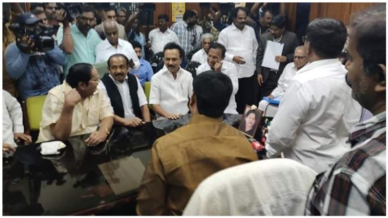 இந்த வேட்பு மனு தாக்கலின் போது கனிமொழி, துரைமுருகன், மு.க.ஸ்டாலின் ஆகியோர் உடன் இருந்தனர். மனு தாக்கல் செய்த போது உடனிருந்த ஸ்டாலின் மிகுந்த உற்சாகத்துடன் காணப்பட்டார். பேரவை செயலாளர் சீனிவாசன் இருக்கைக்கு எதிராக வைகோவுடன் உட்கார்ந்திருந்த மு.க.ஸ்டாலின் மேஜையில் விரல்களை வைத்து தாளம் போட்டு சிரித்தப்படி உற்சாகத்தில் பேசிக் கொண்டிருந்தார்.
