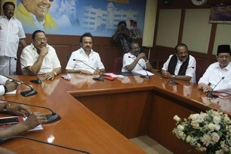 கூட்டணியை திமுக இறுதி செய்து வரும் நிலையில், இன்று காலை விடுதலை சிறுத்தைகள் கட்சிக்கு இரு தொகுதிகளும், இந்திய கம்யூனிஸ்டு கட்சிக்கு இரு தொகுதிகளும் ஒதுக்கி உடன்பாட்டில் கையெழுத்திட்டனர். இதனை தொடர்ந்து பேசுவார்த்தைக்கு வந்த மார்க்சிஸ்ட் கம்யூனிஸ்ட் கட்சியினர் உடன்பாடு ஏற்படாததால் நாளை 3ம் கட்ட பேச்சுவார்த்தையில் கலந்து கொள்ள உள்ளனர்.