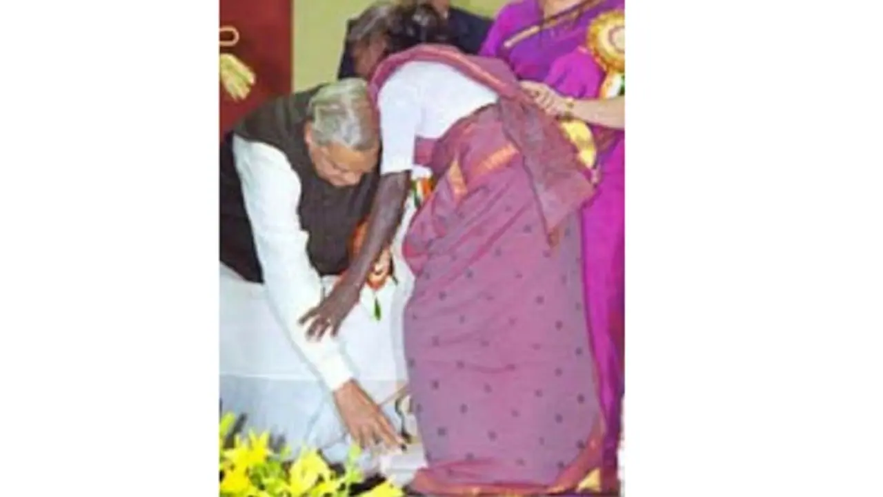 மதுரை சின்னப்பிள்ளை காலில் விழுந்து ஆசி வாங்கினார் தலைகனம் இல்லா மாமனிதர் மறைந்த முன்னாள் பிரதமர் வாஜ்பாய்.