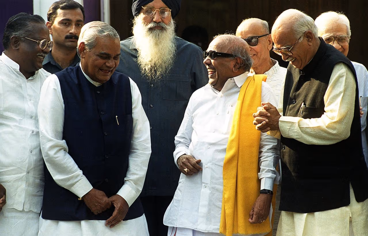 ஆனால் வாஜ்பாய் எனும் மனிதரின் ஆத்மார்த்த குணாதிசயங்கள்தான், காவியை மிக கடுமையாக எதிர்த்த கருணாநிதியை பி.ஜே.பி.யுடன் கூட்டணி வைக்கும் சூழலை உருவாக்கின. எந்த நாடாளுமன்றத்தை பரதேசிகளின் கூடாரம் என்று கருணாநிதி விமர்சித்தாரோ அங்கே அதே பி.ஜே.பி.யின் கூட்டணியில் தன் எம்.பி.க்களை கொண்டு போய் அமர வைத்தார்.