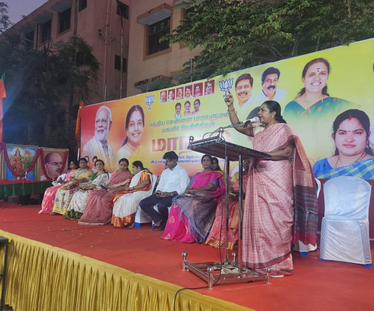 சென்னை சூளைமேட்டில் மத்திய சென்னை நாடாளுமன்ற தொகுதிக்கான மகளிர் மாநாடு நடைபெற்றது. இதனை பாஜக தேசிய மகளிர் அணி தலைவரும் சட்டமன்ற உறுப்பினருமான வானதி சீனிவாசன் தொடங்கி வைத்தார். இதனை தொடர்ந்து இந்நிகழ்ச்சியில் பேசியவர், மற்ற கட்சியினர் மகளிர் ஓட்டு வேண்டும் என்று யோசிப்பார்கள் ஆனால் அவர்களுக்கு அதிகாரம் பொறுப்பு தர வேண்டும் என்று யோசிப்பவர்கள் பாஜக மட்டும்தான்.